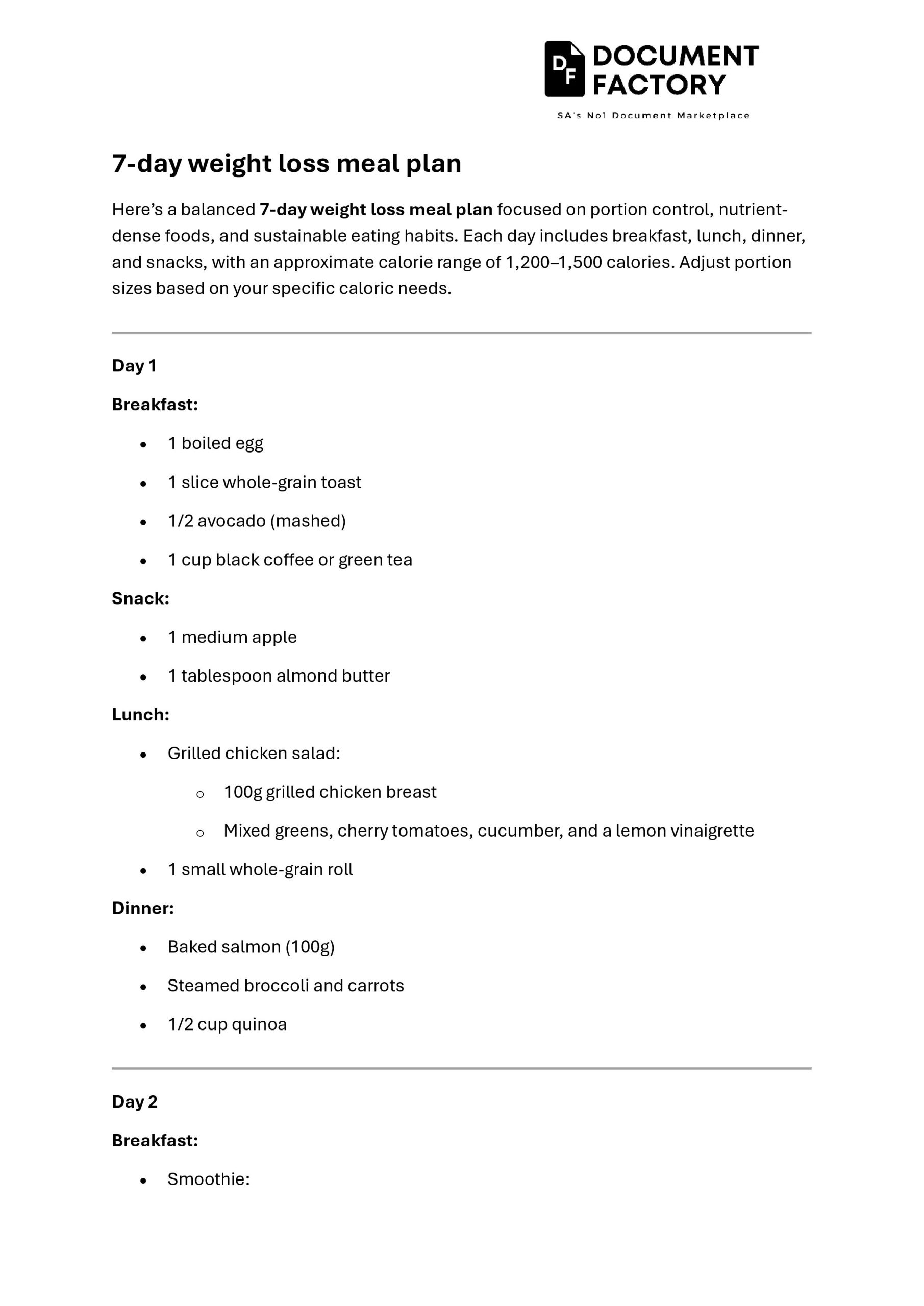 - 7 days of balanced meals tailored to support weight loss.